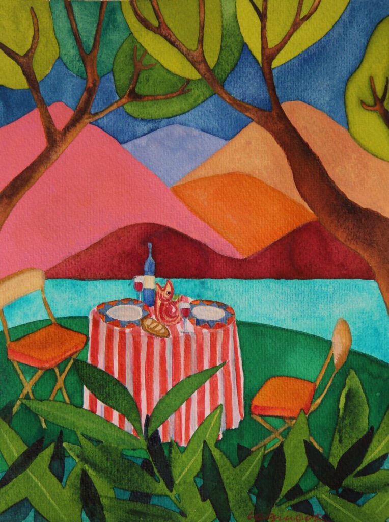 Evgenia Loginova’s art atelier, located on the picturesque shore of Lake Kerkini in the village of Mandraki, is open to visitors. Here you can see the artist’s works, purchase originals, prints, postcards, and choose unique gifts and decorations inspired by the mesmerizing atmosphere of Lake Kerkini.